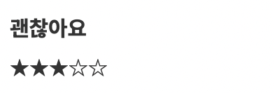 rating 점수만큼 꽉 찬 별을 반복해서 찍고, 나머지 점수만큼 빈 별을 찍습니다. 서버에서 HTML이 이미 완성되기 때문에 페이지 로딩 즉시 별이 렌더링 되고, 유지보수 또한 쉬워진다는 장점이 있습니다.